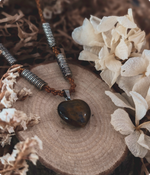 Collar artesanal que combina la belleza del macramé con la fuerza del jaspe, una piedra conocida por su energía protectora y estabilizadora este simboliza la conexión con uno mismo, el amor propio y la armonía interior.
