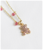 Collar de acero inoxidable y su adorable osito colgante con incrustaciones brillantes que combina con todo; ya sea para usar todos los días o para regalar, este collar es puro estilo con un toque cute.